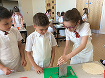 In the ‘cooking and nutrition’ element children find out where food comes from. They understand the importance of eating a healthy and balanced diet and they learn how to prepare (and cook) ingredients safely and hygienically. All of these elements are delivered in every project (or menu) for every year group and year after year our children are expected to improve on their knowledge and performance in seeing their designs (and menus) materialise.